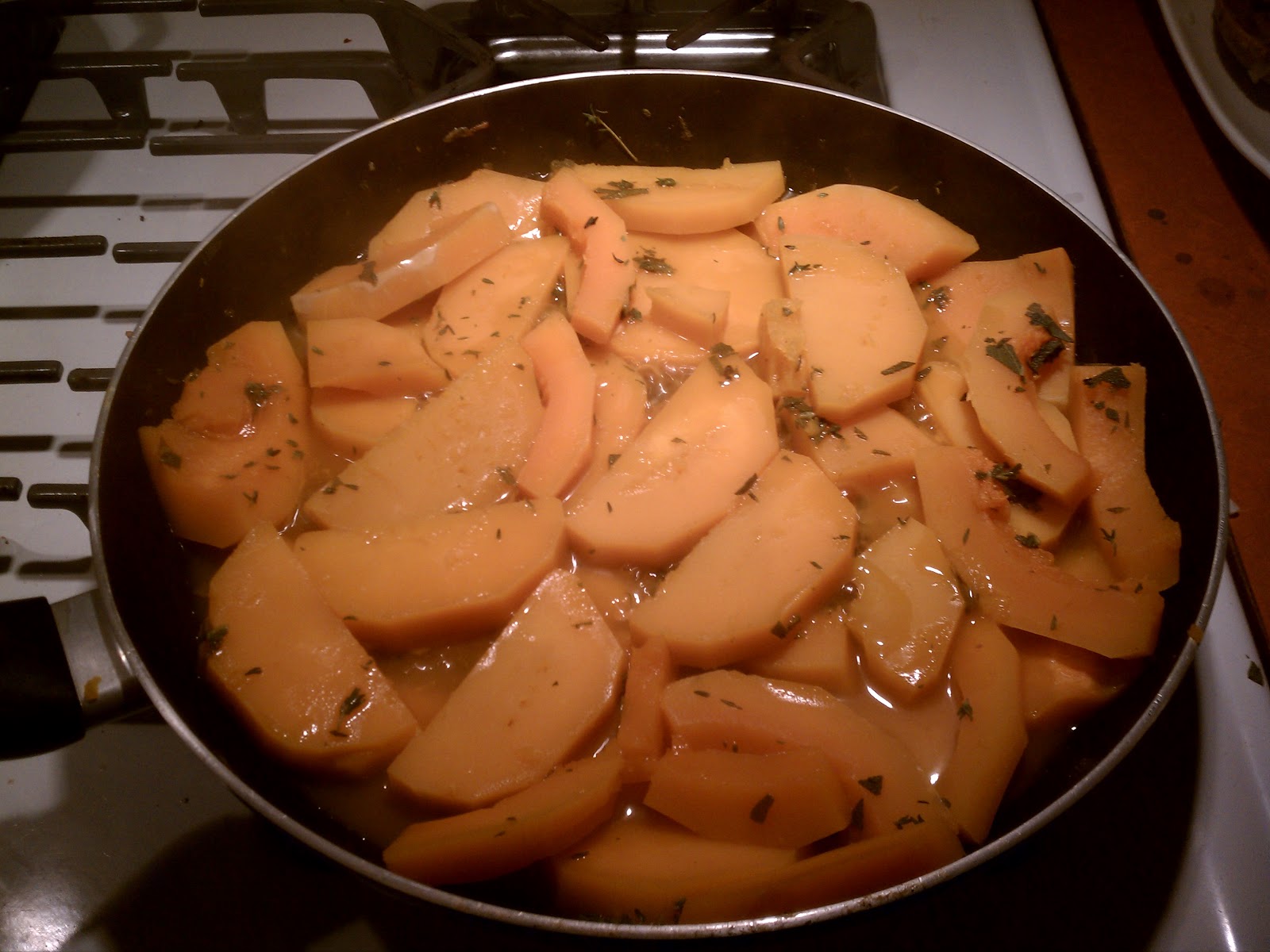 Slice a bunch of butternut squash. For good measure, set a pitted date (Medjool, preferably) on the edge of your cutting board. It wards off bad cooking spirits.